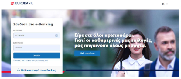 Απευθείας μεταφέρεσαι στο περιβάλλον της Eurobank και ολοκληρώνεις τη διαδικασία ακολουθώντας τα παρακάτω βήματα: